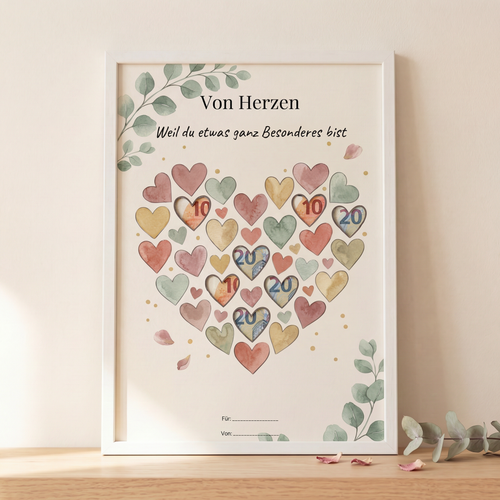 ✓ Geldscheine aufkleben, fertig — kein Basteln, kein Bearbeiten nötig
